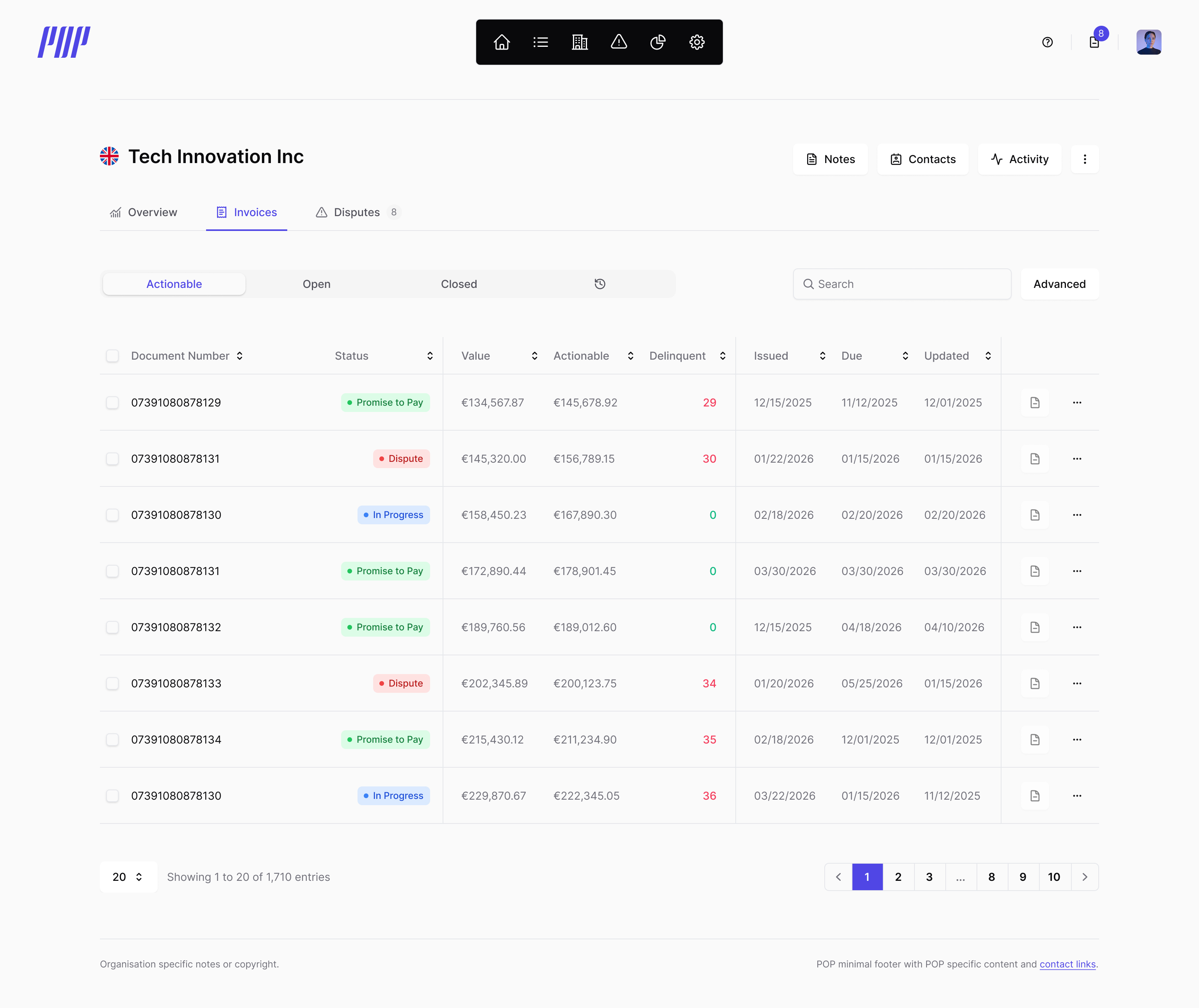 POP was created by experts who've spent years optimising cash processes for hundreds of global enterprises. We understand the complexity. We know what works. And we've built a platform that makes best-in-class OtC intelligence accessible to businesses ready to act on it.